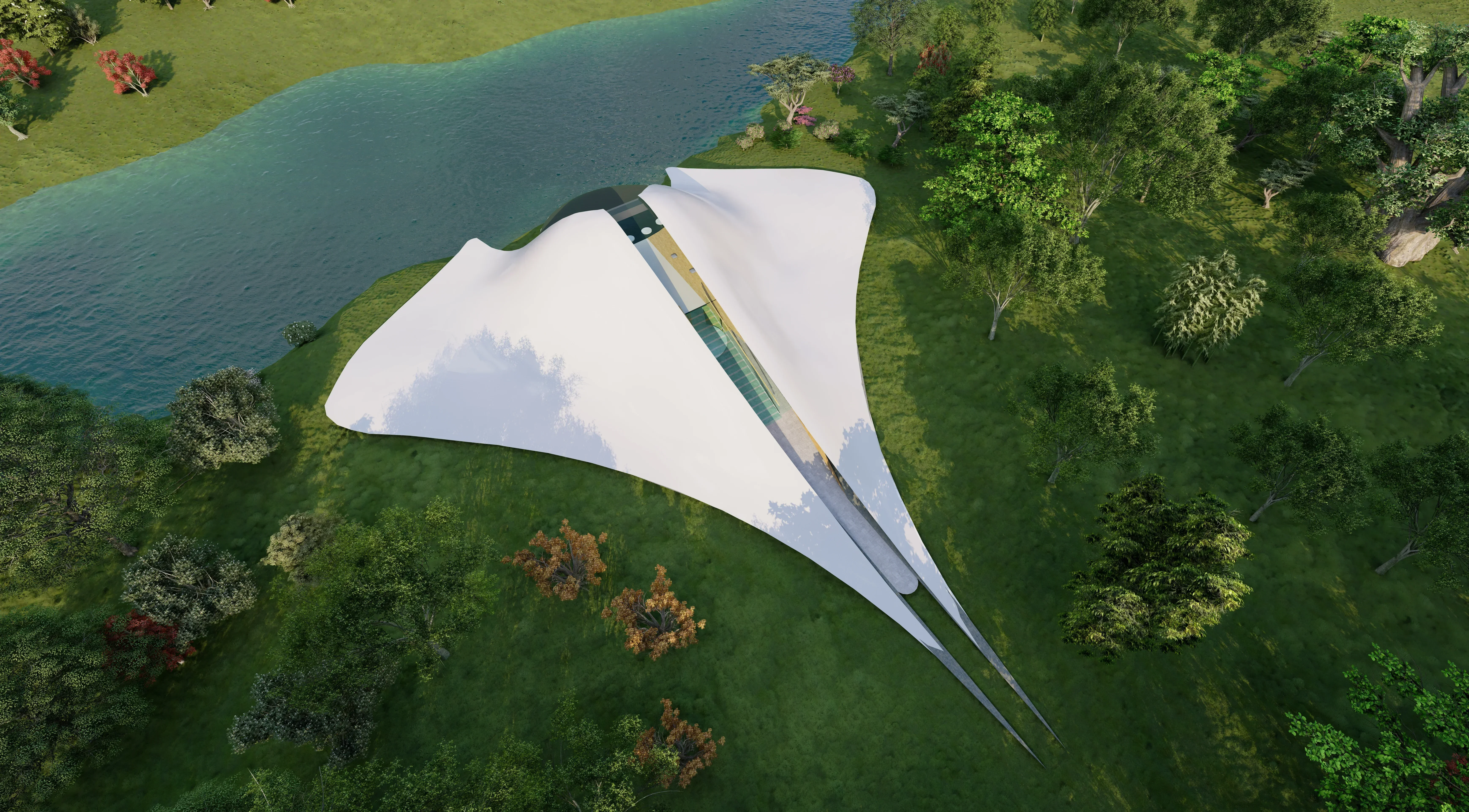 During quaranteeing and studying-at-home, I have increasingly realized the importance of 'going out into nature" and into the woods. The design of this piece of architecture, residing by the riverside of the Central Park in New York, is to provide busy city-dwellers a place for calming mindfulness and valuable reflections.